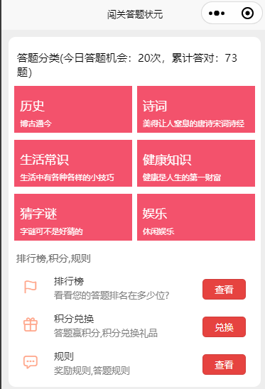 闯关答题状元:包含历史类答题,健康常识类答题,生活常识答题,唐诗宋词答题